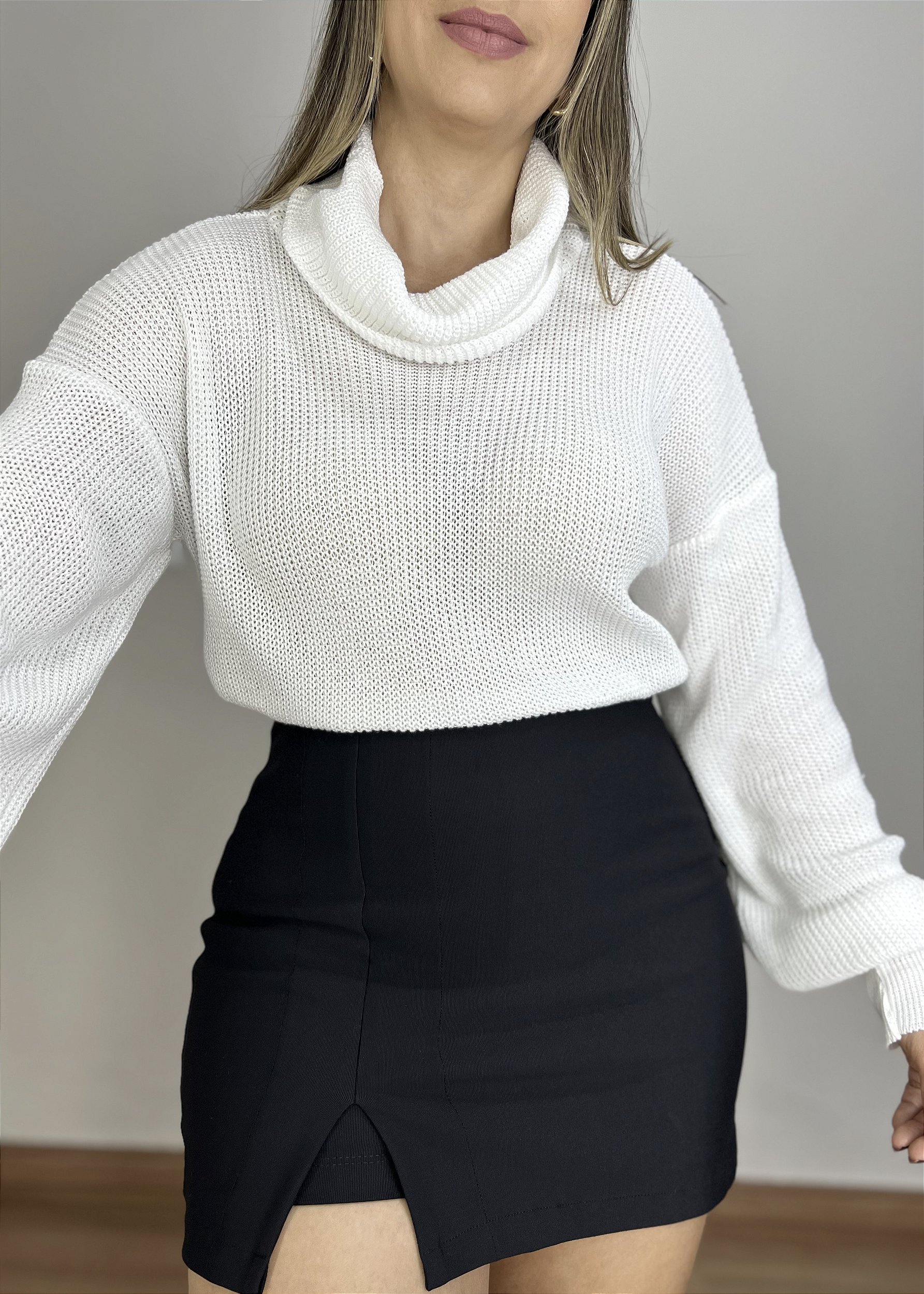 Short saia confeccionado no tecido poliamida/montaria com elastano. Short por dentro e saia por fora, na frente e atrás. Possui zíper lateral. Com fenda na coxa.